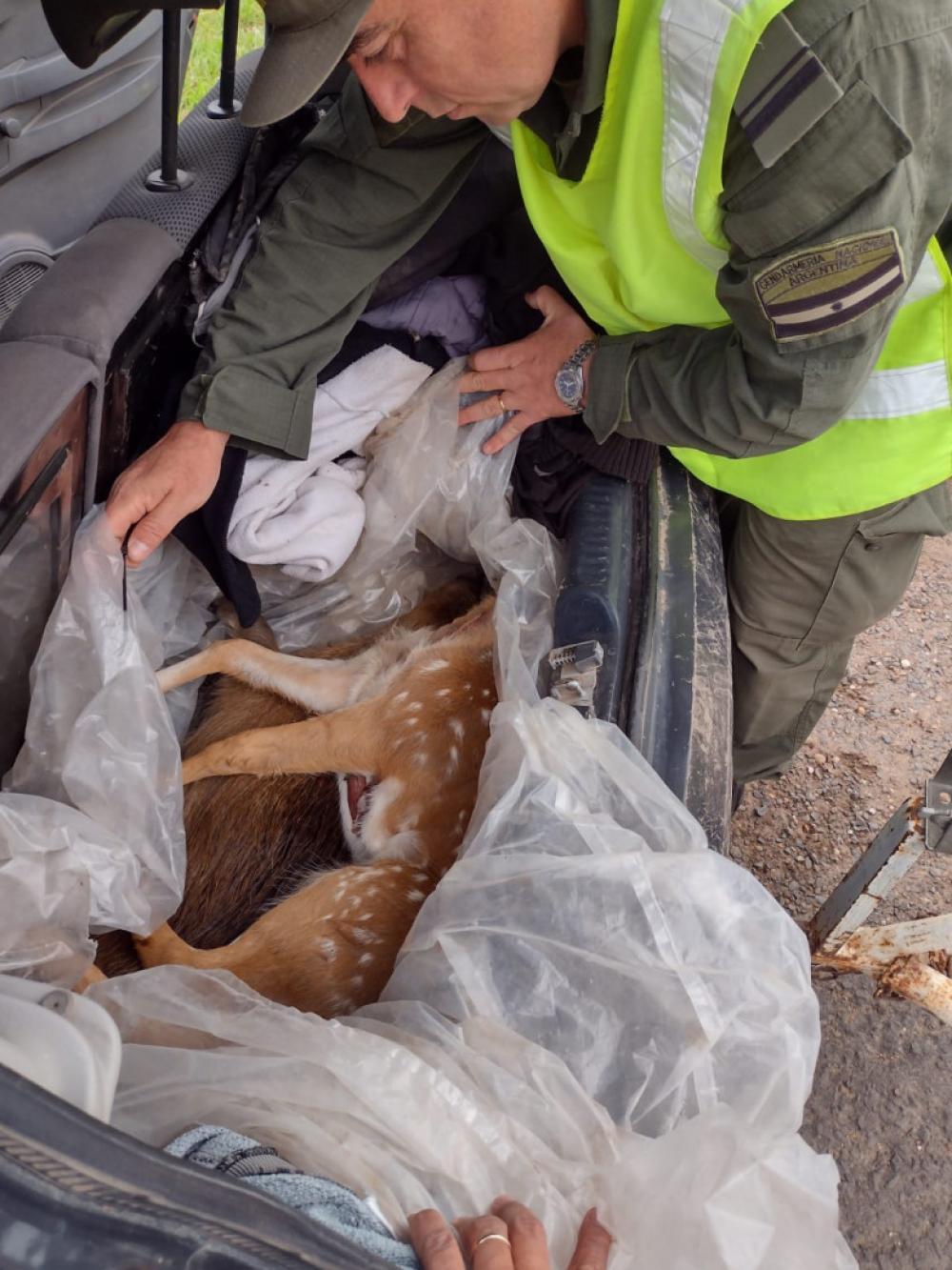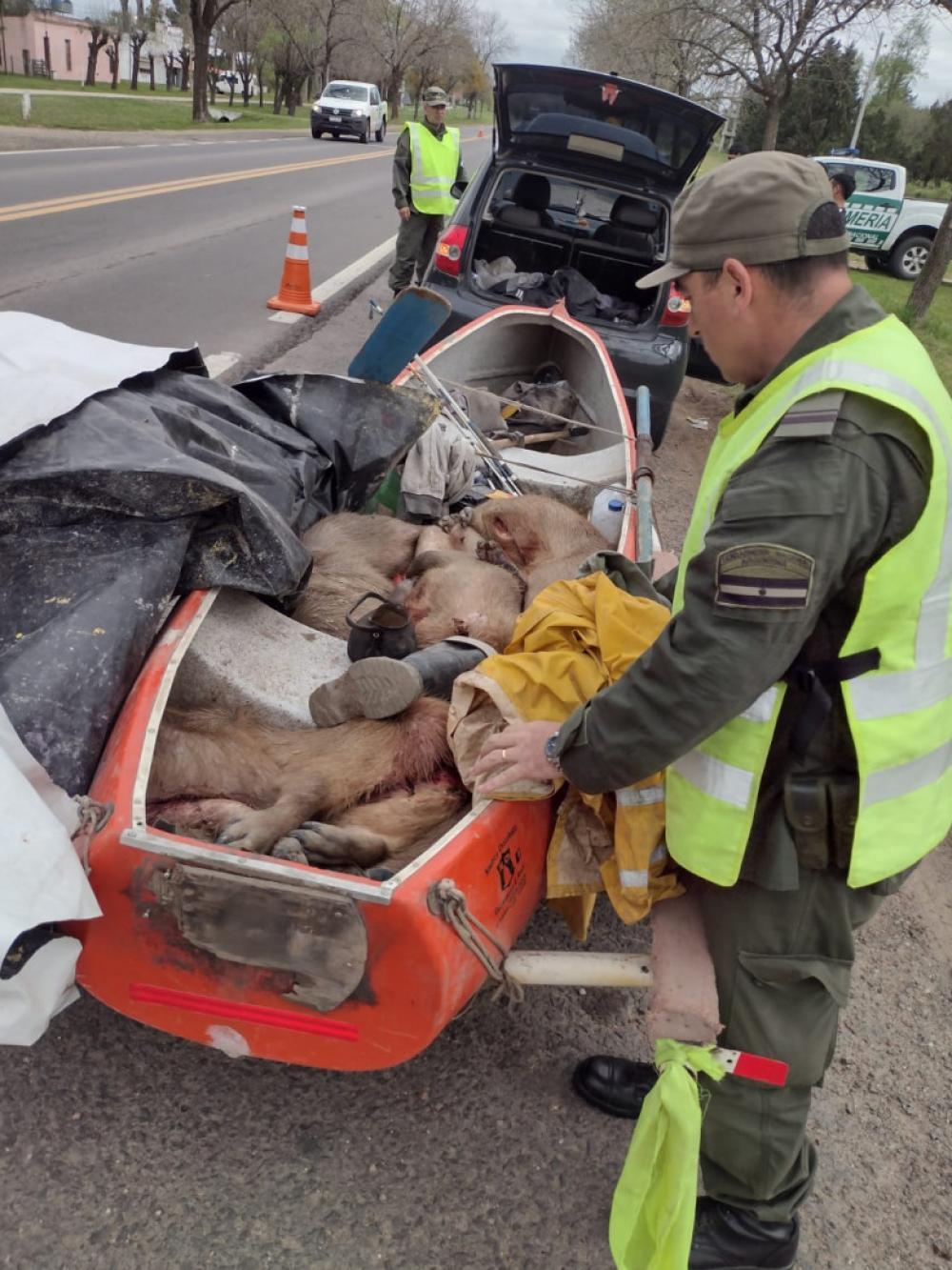 Al momento de la inspección, los gendarmes detectaron nueve carpinchos (de los cuales, siete estaban muertos), un ciervo axis eviscerado, como así también, una escopeta calibre 12.70 , una carabina y 36 cartuchos.