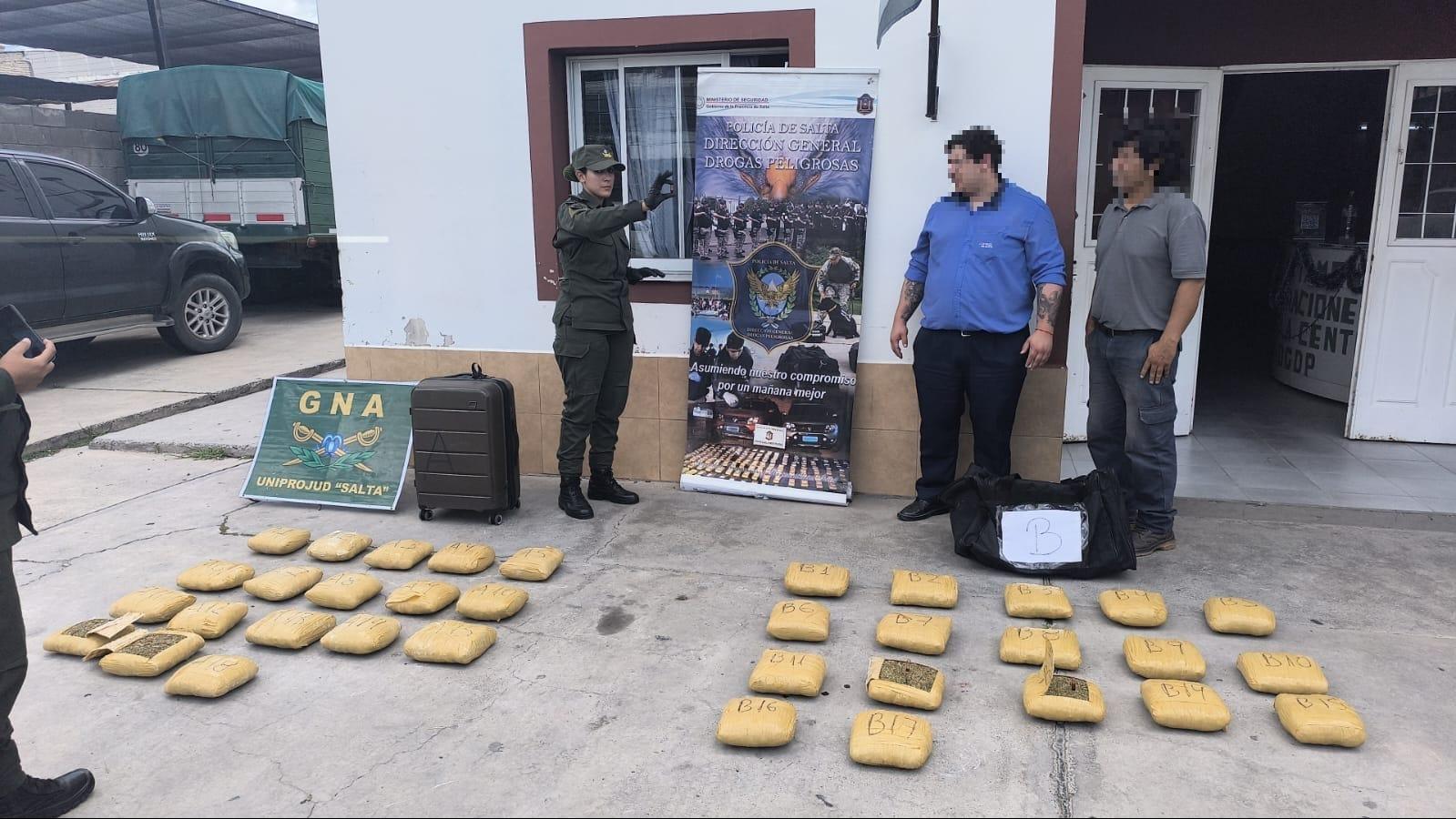 Efectivos de la Gendarmería Nacional lograron incautar 36 kilos y 730 gramos de marihuana durante un operativo de control en la terminal de ómnibus de la Ciudad de Salta. La droga, distribuida en 35 paquetes, estaba oculta en dos valijas que eran transportadas en la bodega de un micro de larga distancia.
