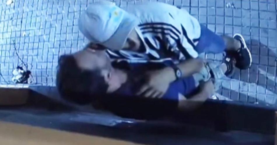 Las imágenes captadas por las cámaras de seguridad muestran el momento en el que un delincuente le hace "piernita" al otro para que se suba y sustraiga las luces colocadas en altura.