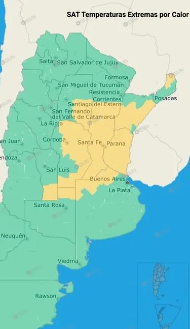 De esta manera, se mantiene el alerta amarillo que regía para algunas partes de las provincias de Buenos Aires, Entre Ríos, Corrientes, Misiones, Santa Fe, Santiago del Estero, Córdoba, San Luis y La Pampa.