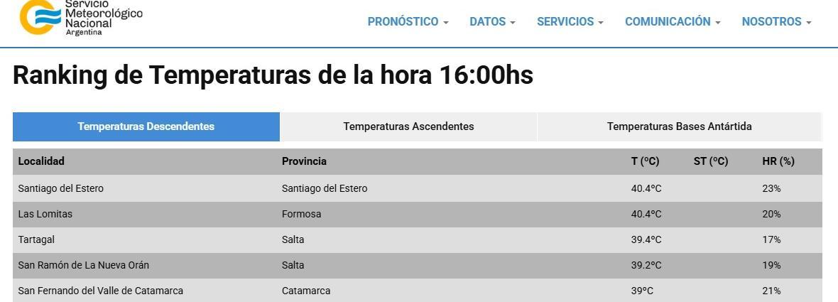 Según el Servicio Meteorológico Nacional, la capital santiagueña encabeza el ranking de las ciudades más calientes del país, seguida por Las Lomitas en Formosa y Tartagal en Salta. Este registro convierte al día en el más caluroso del año, en el marco de una intensa ola de calor que afecta a gran parte del país.