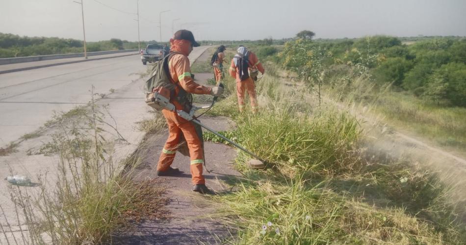 Para la ejecución del operativo, la Dirección de Servicios Urbanos destinó una cuadrilla de 40 personas, además de maquinaria específica como motoguadañas y tractores desmalezadores.