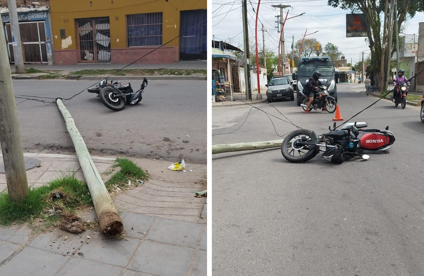 En horas de la siesta, un insólito siniestro vial tuvo lugar en la capital santiagueña, cuando un poste telefónico cayó encima de un motociclista. Esto hizo que el hombre perdiera el equilibrio y terminara sobre el asfalto.
