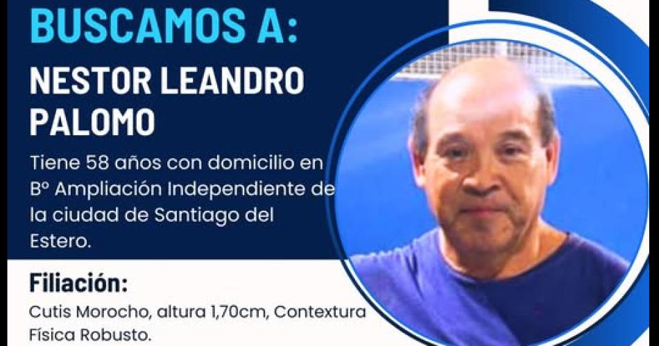 Efectivos policiales de la División Búsqueda de personas de ciudad Capital se encuentran abocados a dar con el paradero de Néstor Leandro Palomo, de 58 años con domicilio en el barrio Ampliación Independencia de esta ciudad.