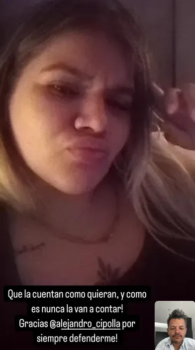 Esta tarde, la joven posteó una captura de video en sus historias de la red social instagram mientras realizaba una videollamada con su abogado, el letrado Alejandro Cipolla y agregó: "Que la cuentan como quieran, y como es nunca la van a contar (SIC)".