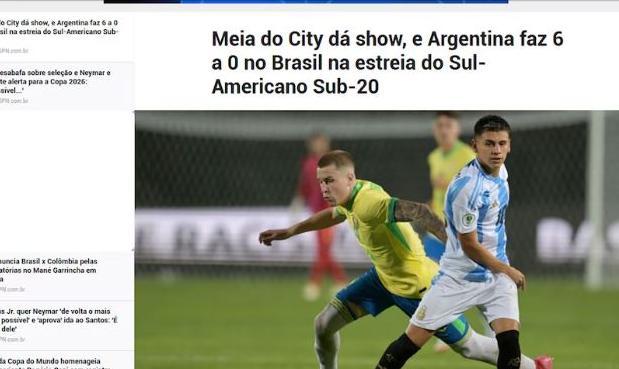 "La selección brasileña Sub 20 es humillada por Argentina en el Sudamericano", fue el título del medio deportivo Lance, que calificó al estreno de los suyos como un "pésimo comienzo".
