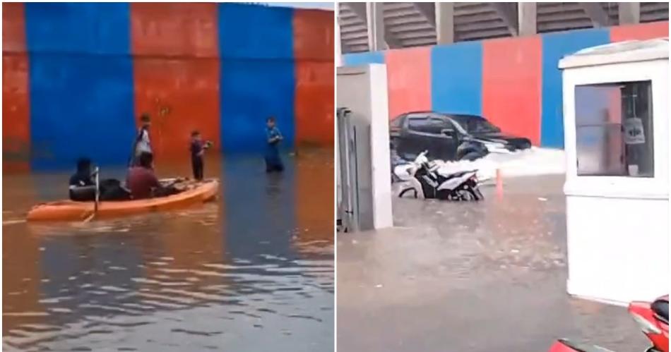 Pese a la preocupante situación, los más chicos pudieron darle una utilidad a la gran cantidad de agua que cayó: usaron la cancha para hacer kayak. El insólito momento quedó grabado en varias cámaras de celulares que luego se difundieron en las redes sociales.