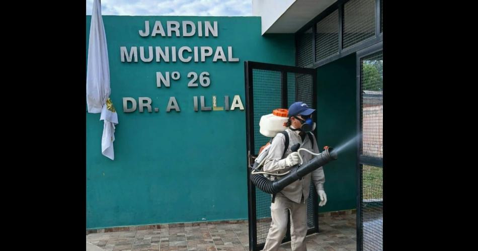 Los trabajos, a cargo de las áreas de Educación, Servicios Urbanos y Calidad de Vida, se efectúan tanto en el interior como en el exterior de los edificios escolares, procediendo además a la remoción de los elementos que pudieran facilitar la incubación de insectos.