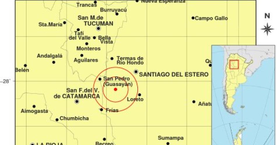 Este movimiento telúrico se registró a unos 34 kilómetros al sur de Guasayán; 61 Km al noreste de Frías, o 61 Km al oeste de Loreto. El mismo se desarrolló a 29 kilómetros de profundidad.