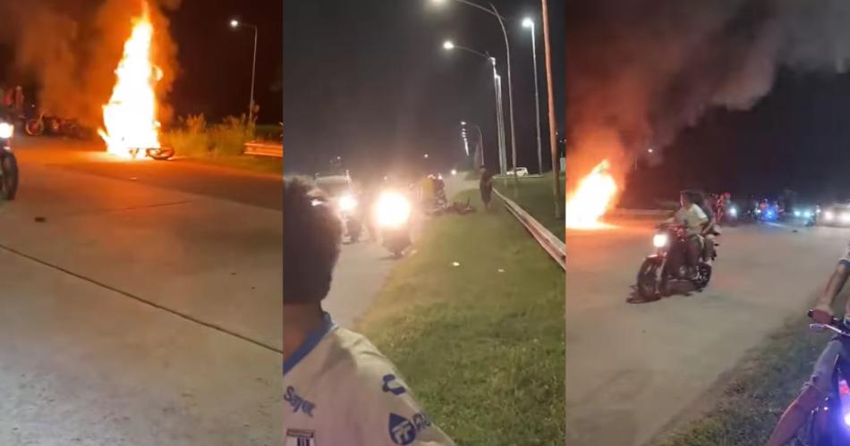 La noche del "jueves de locos", en la cual jóvenes motociclistas se reúnen a correr las clásicas 'picadas', no terminó de la mejor manera para uno de sus corredores que vio arder su moto, sobre la autopista Juan Domingo Perón.