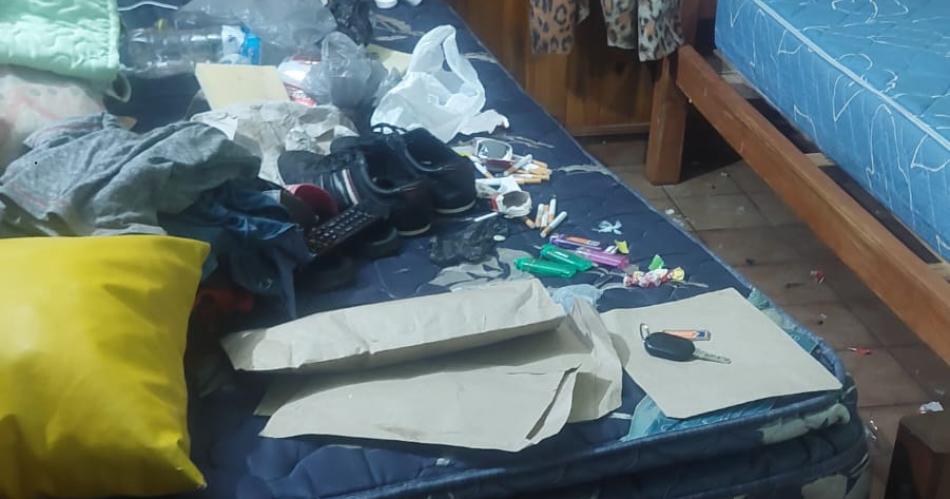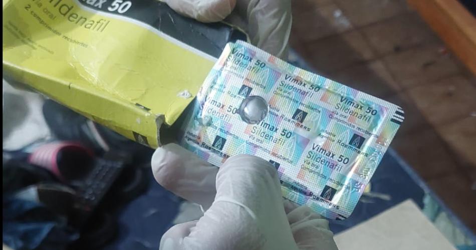 En la requisa policial se pudo observar la presencia de dos envoltorios de nylon con cocaína, según pudo constatar personal de Drogas Peligrosas. Además, se secuestraron una pipa de fabricación casera, una cuchara, botellas de bebidas alcohólicas, restos de blíster de Viagra, dinero en efectivo y un automóvil.