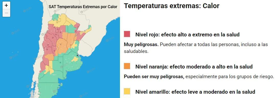 Esto es muy importante tener en cuenta ya que de acuerdo con el organismo nacional, la provincia se encuentra en nivel rojo de temperaturas, es decir, que posee un efecto alto a extremo en la salud de todas las personas, ya no solamente en grupos de riesgo. Por ese motivo, recomiendan mantenerse hidratado, con la cabeza cubierta y con protector solar.