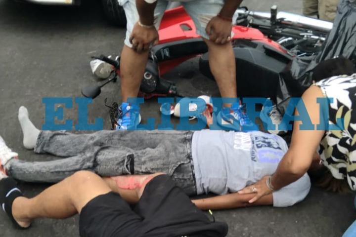 Una pareja de motociclistas tuvo que ser trasladada de urgencia al hospital Regional, luego de haber sido embestida por una camioneta en el cruce de Avenida Belgrano casi Jujuy.