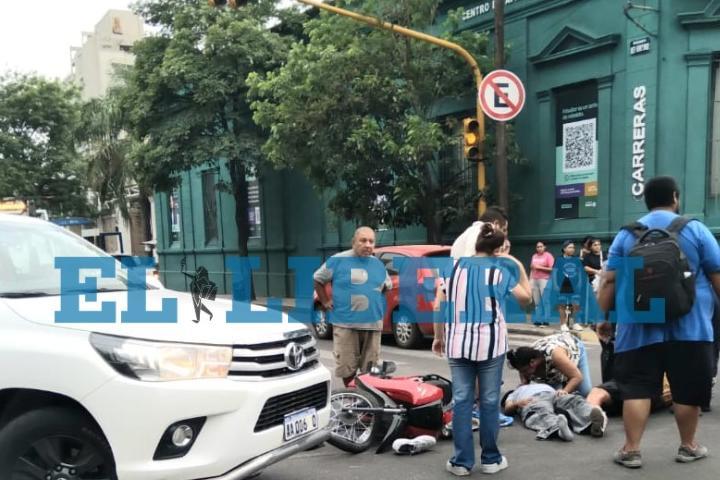 Una pareja de motociclistas fue embestida por una camioneta en plena Belgrano Una pareja de motociclistas fue embestida por una camioneta en plena Belgrano