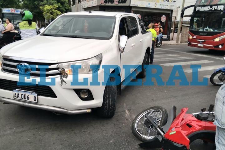El hecho ocurrió minutos antes de las 9. Al parecer ambos vehículos circulaban en idéntico sentido y al llegar al cruce, la camioneta intentó doblar hacia Jujuy, algo que no está permitido, embistiendo al rodado menor.