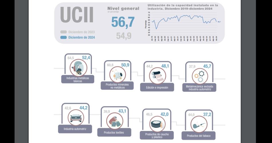 La utilización de la capacidad instalada en la industria se ubicó en 56,7% en diciembre, con una caída de 5,6 puntos respecto del mes anterior, y registró el segundo peor diciembre en los últimos seis años.