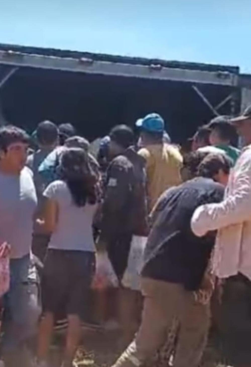 Después, casi 30 personas se congregaron alrededor del camión dispuestas a apropiarse de la carne. Durante casi media hora hubo empujones, advertencias, gritos e insultos. La gente pugnó por apoderarse de los cortes de carne, pero chocó con la férrea resistencia de policías.