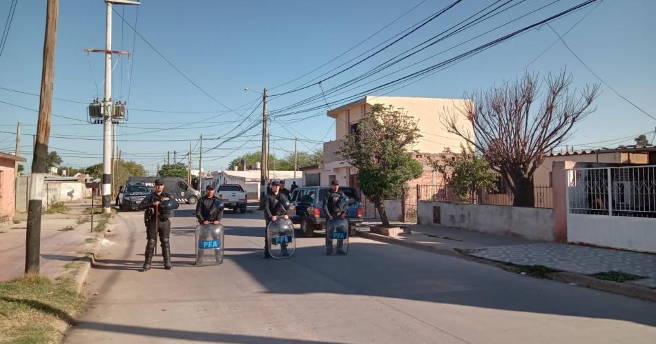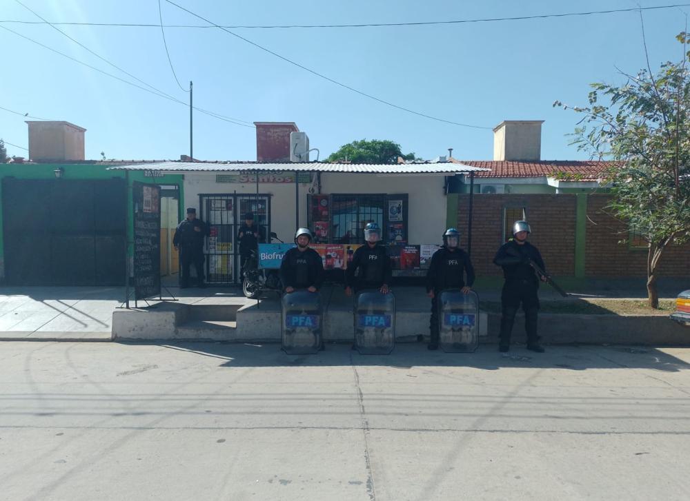 Los Federales trabajaron en forma conjunta con efectivos de la Policía de la Provincia, para preservar la integridad de los uniformados, ante la hostilidad de los vecinos del barrio Sarmiento donde se concretó uno de los allanamientos.