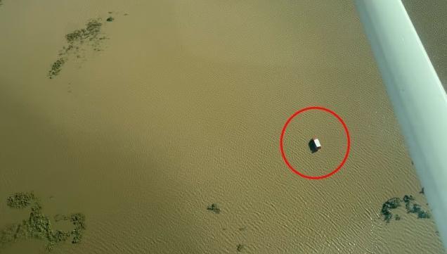 (Desde al aire, así se ve la camioneta Andreani en donde se refugieron las hemanas que siguen desaparecidas.)