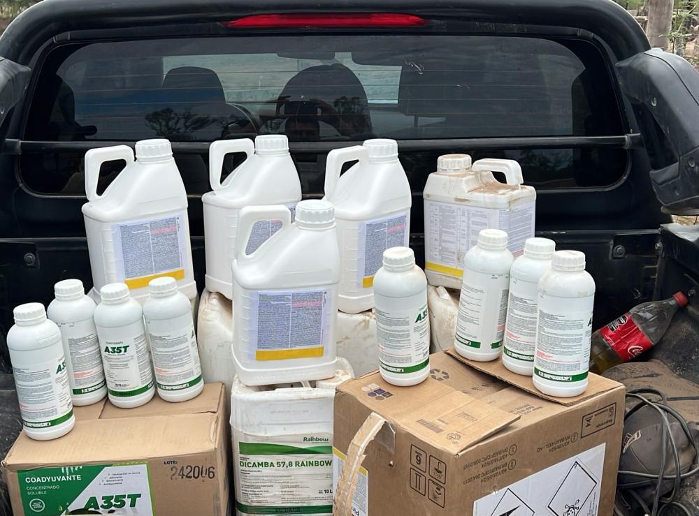 1) A la vera de ruta provincial 116, zona rural de Los Juríes, lugar en donde reside "Yiyo" Cáceres fueron secuestrados una caja con cuatro envases plásticos de 5 litros cada uno; Abamectina por 5 litros; Dicamba por 10 litros; Cletodim por 80 litros y Coadyudante por 12 litros. No fue encontrado "Yiyo".