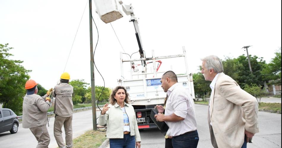 La intendente de la Capital, Ing. Norma Fuentes, supervisó las tareas de restauración del alumbrado público de la avenida Lugones, entre la avenida Solís y la colectora de la Circunvalación; con el propósito de recuperar las luminarias vandalizadas.