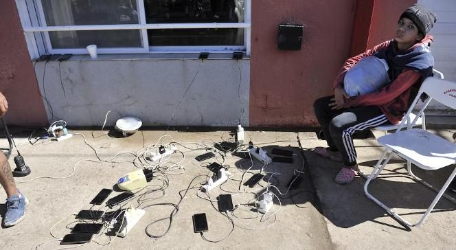 (Se arman grupos para la carga de batería de celulares. Foto: Infobae.)