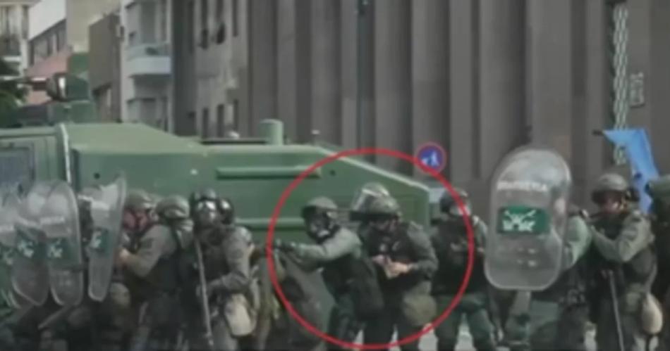 Luego, dan detalles del análisis y de los videos obtenidos para la reconstrucción: "Gracias a un dron de canal A24 contamos con otra toma del cordón represivo formado por efectivos de Gendarmería y la Policía Federal alineados en torno a dos carros hidrantes. Sincronizando los videos coinciden el disparo, el movimiento del chorro del hidrante y un disparo posterior que rebota en el piso, las personas que lo auxilian y el humo que llega detrás".