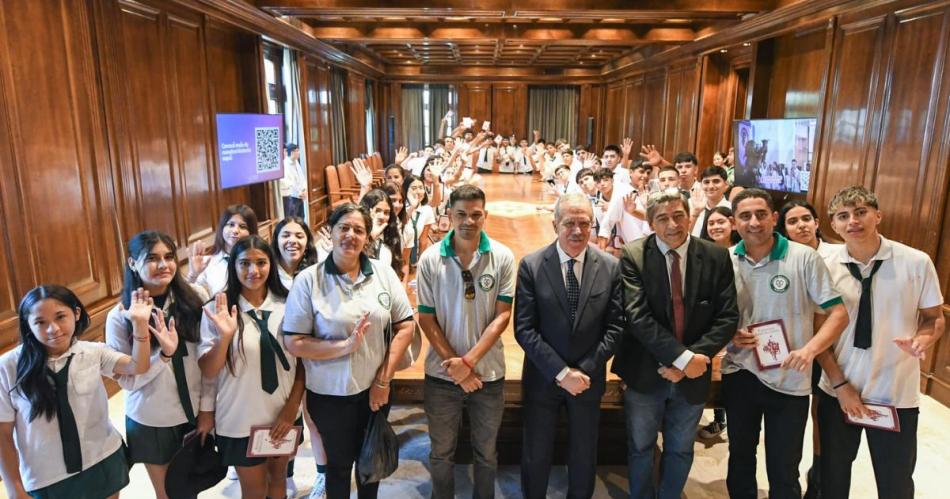 El jefe de Gabinete de Ministros, Elías Suárez, en representación del gobernador Gerardo Zamora, dio la bienvenida en Casa de Gobierno a la delegación que llegó acompañada por docentes, encabezados por el rector José Alberto Llanos.