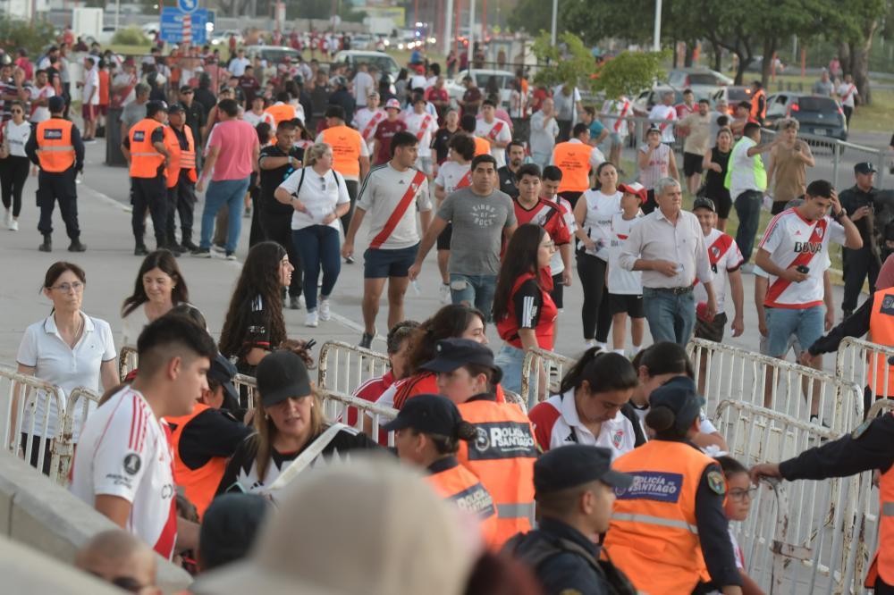 En los alrededores del Estadio Único Madre de Ciudades, la seguridad está reforzada para garantizar el orden y el acceso de los espectadores, mientras que los operativos de tránsito colaboran para la llegada de los hinchas sin inconvenientes.