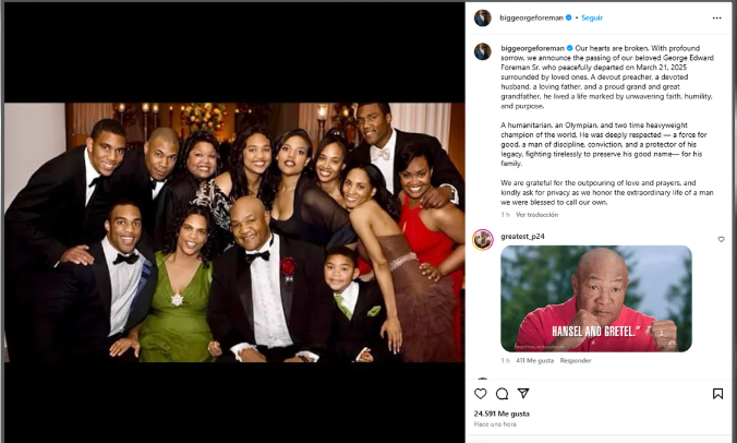 Además de su carrera deportiva, Foreman se destacó por su faceta empresarial y como predicador. Su familia pidió respeto por su privacidad en este momento y agradeció las muestras de afecto recibidas.