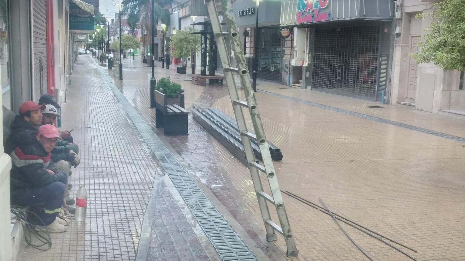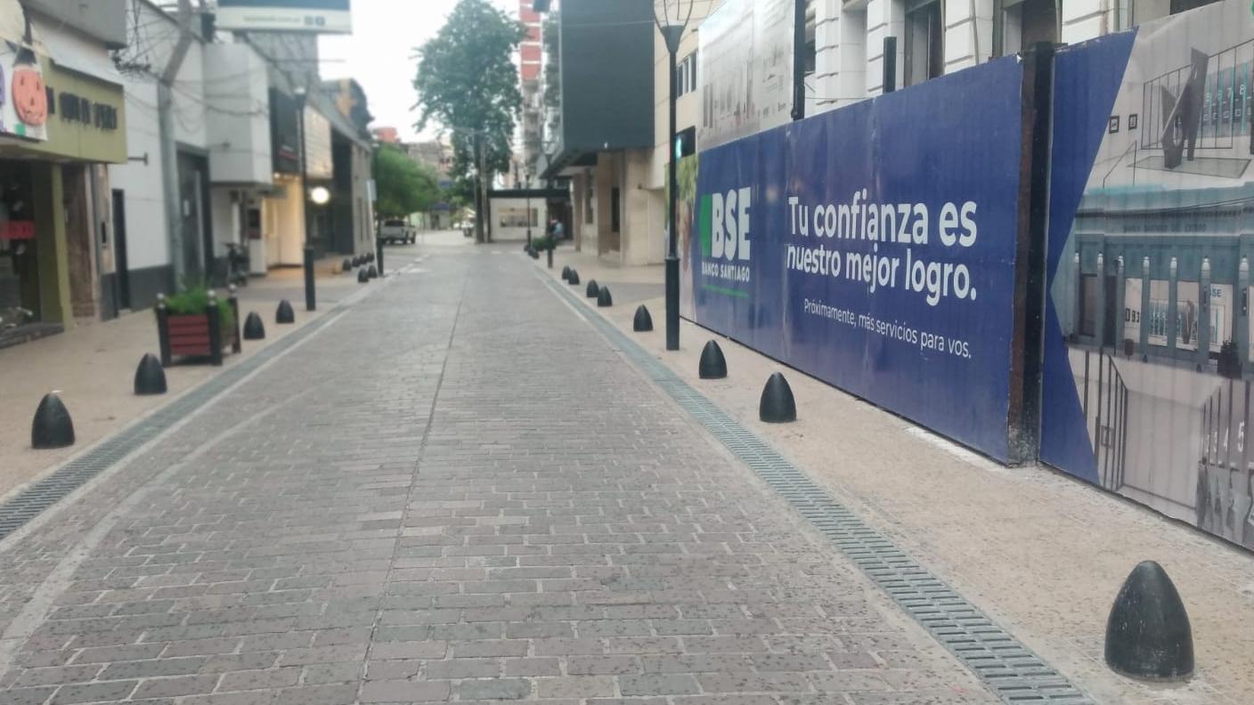 En esta galería de fotos, se pueden observar al casco céntrico santiagueño desolado debido al feriado, con calles mojadas y acumulación de agua producto de las intensas lluvias.