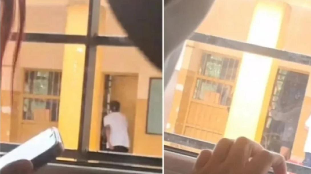 (Foto del momento cuando el adolescente ingresó al aula con el machete. Foto El Ttibuno.)