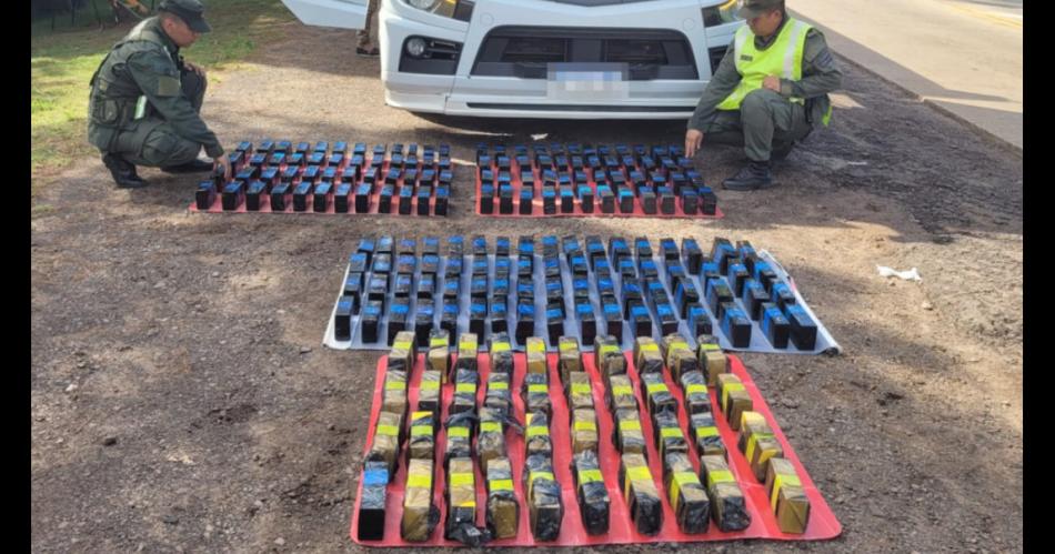 Al continuar con la inspección, los funcionarios hallaron en el compartimiento de la parte superior del rodado diversos paquetes envueltos en nylon negro.