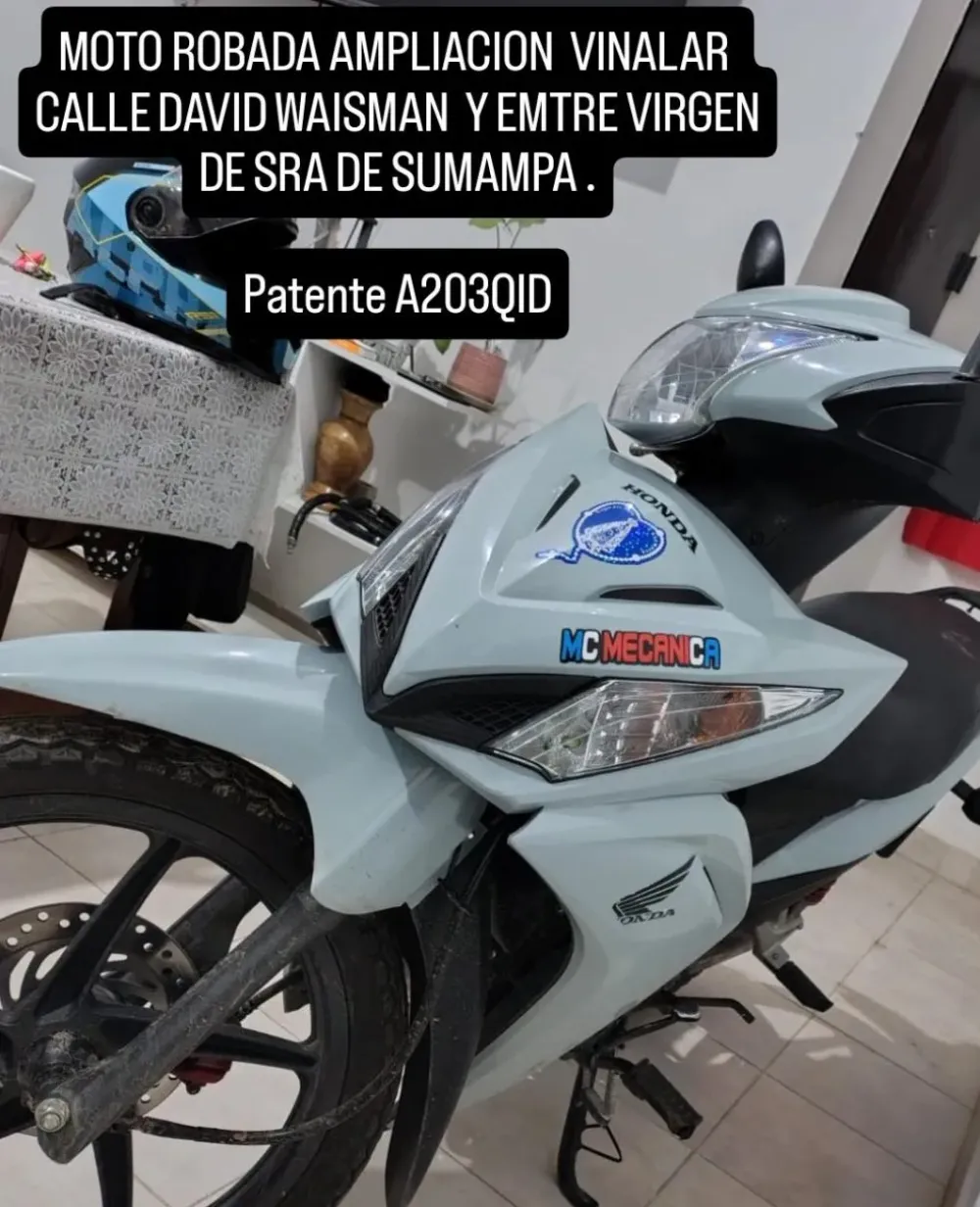 Clama por la devolución de su moto robada en ampliación Vinalar a través de un posteo en Facebook.