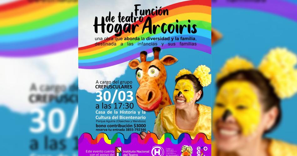 A partir de las 17:30 hs, los más pequeños y sus familias podrán disfrutar de la obra de teatro "Hogar arcoiris", una puesta en escena que aborda la temática de la familia y la diversidad, fomentando valores de respeto y comprensión.