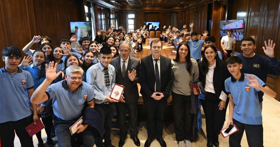 El mandatario, por su parte, expresó su satisfacción por poder recibirlos junto al jefe de Gabinete en la sede del Poder Ejecutivo y agradeció a los docentes por acompañar a los estudiantes en este viaje que forma parte del programa "que tiene como objetivo que todos los jóvenes del último año de todo el territorio provincial puedan visitar los lugares históricos, culturales, deportivos, y sobre todo espacios institucionales que tiene nuestra provincia".