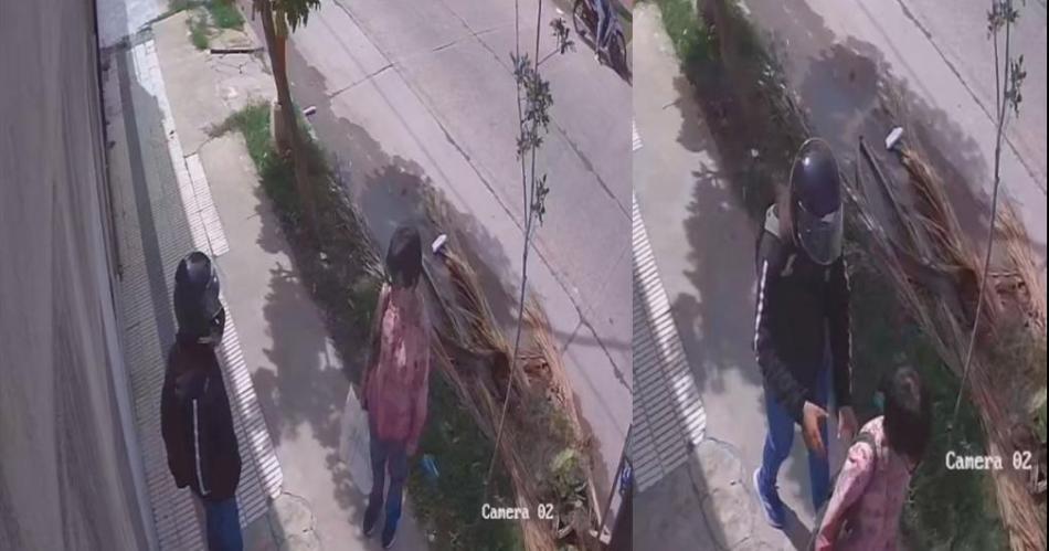 Una cámara de seguridad ubicada en una casa tomó la secuencia del robo. En la misma se puede ver a dos personas en la vereda de enfrente de donde está ubicada la cámara. Una de ellas parada al lado de una moto y el restante sentado en ella, al mando de la misma. Tras unos segundos, el sospechoso que estaba parado al lado del motovehículo cruza la calle y se para al frente de una puerta, simulando golpear la misma, como si se tratara de un repartidor.