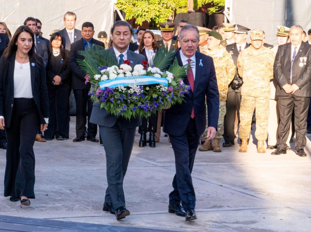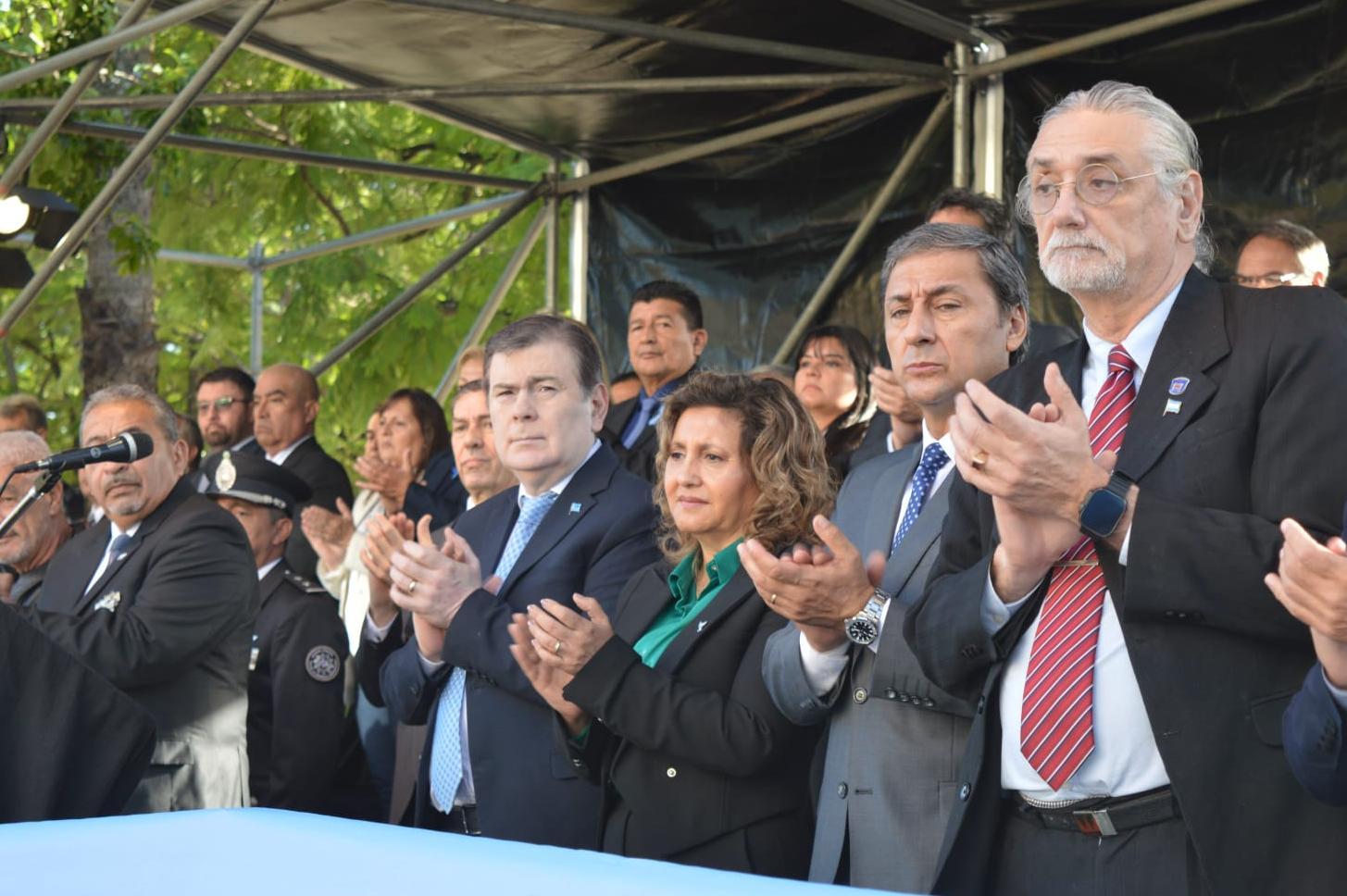 La ceremonia se desarrolló en Plaza Sarmiento de la ciudad Capital, donde también estuvieron la intendente Norma Fuentes; ministros, legisladores, autoridades académicas y representantes de organizaciones civiles.