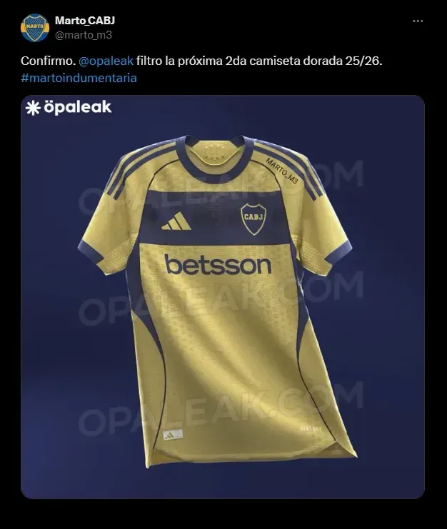 La camiseta tiene ciertas reminiscencias a la que Boca usó en su última participación en el Mundial de Clubes, cuando perdió la final ante Milan por 4-2. La cuenta Öpaleak compartió la imagen de la remera alternativa que el club de la Ribera podría vestir, destacando algunos detalles interesantes, detalla el portal de TyCSports.