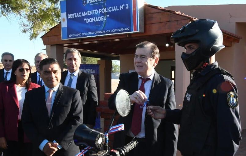 El gobernador Gerardo Zamora visitó este lunes el departamento Alberdi, donde habilitó una planta potabilizadora y un puesto sanitario en la localidad de Agustina Libarona. Mientras que en Donadeu entregó 18 viviendas sociales y dejó inaugurado un destacamento policial y la renovación y ampliación de la Escuela N° 402 "Jorge Trejo".