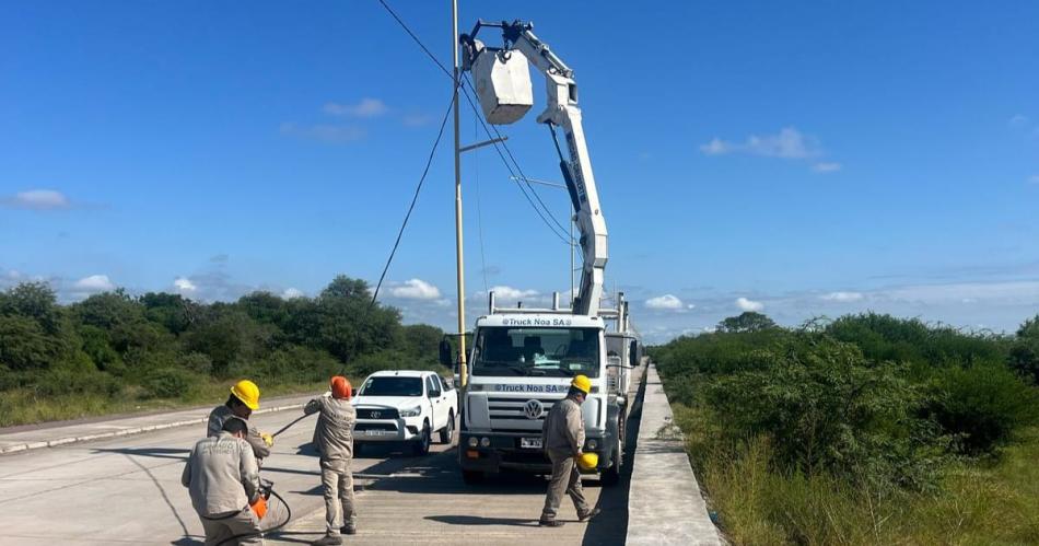 Las tareas se desarrollan en tres etapas con personal, materiales y equipamientos del municipio hasta abarcar cerca de cinco kilómetros. Allí, se está tendiendo el cableado aéreo preensamblado para posteriormente instalar más de 260 nuevos equipos de tecnología Led.