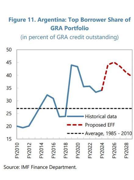 Dentro del directorio del FMI, la alta concentración del préstamo en Argentina fue motivo de debate. Un informe del staff técnico señala que el acuerdo "elevará la concentración crediticia de la cartera de préstamos a los niveles máximos registrados durante el Stand-By de 2018, y la mantendrá elevada durante la vigencia del programa actual".