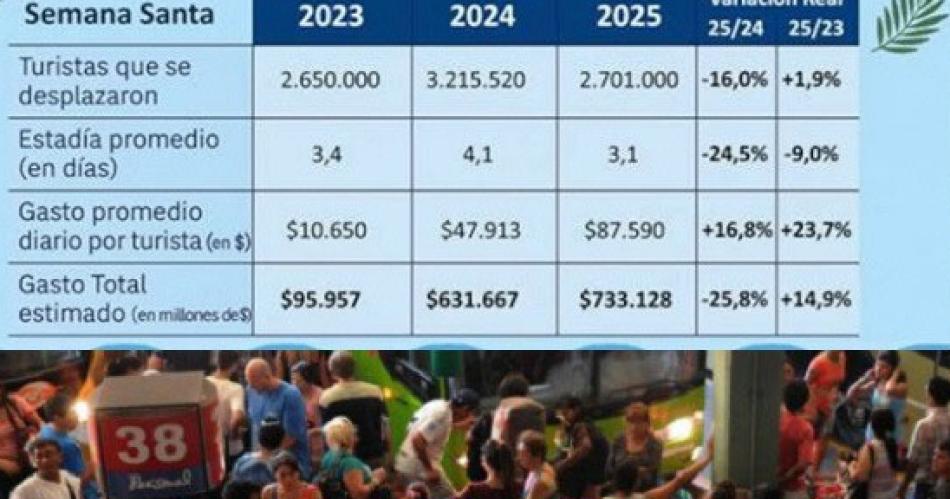 Al comparar las cifras con la Semana Santa de 2023, se observa un aumento del 1,9% en la cantidad de turistas, aunque la estadía promedio se redujo en un 9%. Sin embargo, el impacto económico, medido a precios constantes, fue un 14,9% mayor, lo que indica un incremento en el gasto por persona.