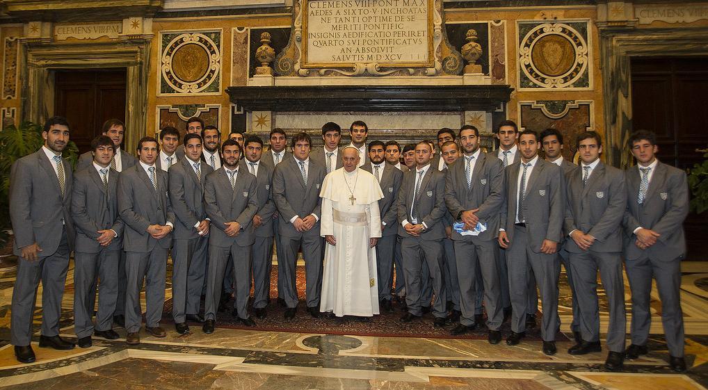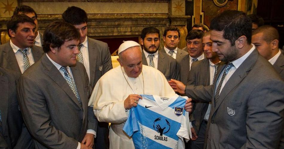 Aquella vez, también estuvieron presentes los jugadores del seleccionado italiano de rugby con quienes el papa intercambió saludos y recibió la camiseta del elenco local. Fue el momento en que también comparó al rugby con la vida.
