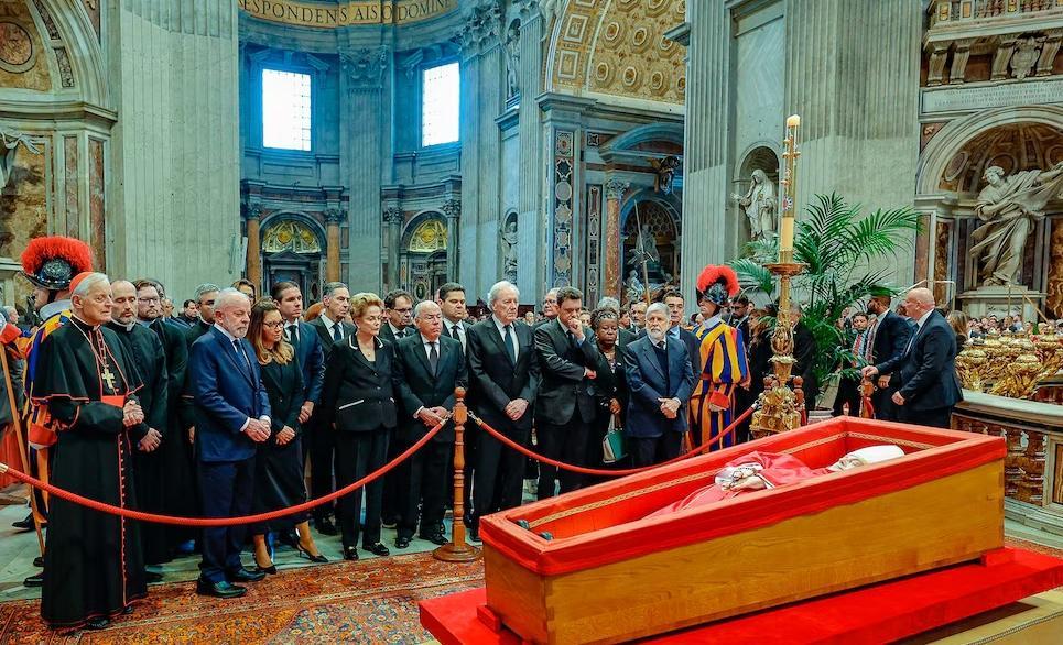 El presidente de Brasil y la primera dama, Janja Lula da Silva, visitaron este viernes la capilla ardiente del papa Francisco, en el tercer y último día de su velatorio en la basílica de San Pedro, y le rindieron homenaje en su último adiós. Además, estuvo acompañado por la ex presidenta Dilma Rousseff, el presidente del Supremo Tribunal Federal, Luís Roberto Barroso; el presidente del Senado, Davi Alcolumbre; el presidente de la Cámara y diputado federal, Hugo Motta; y una comitiva de otros ministros y parlamentarios brasileños.