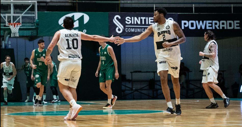 Olímpico: Guillermo Aliende 13, José Defelippo 19, Julián Morales 2, David Shriver 3, Phillip Lockett 2 (fi); Dischon Thomas 15, Santiago Perez 4, Agustín Facello 11 y Luis Spagnoli 0. DT: Adrián Capelli.