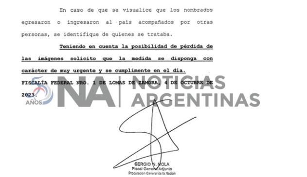 El fiscal federal Sergio Mola pidió hoy que la Policía de Seguridad Aeroportuaria (PSA) revise las imágenes de las cámaras de seguridad para poder ubicar en ese lugar al ex jefe de Gabinete bonaerense Martín Insaurralde y a la modelo Sofía Clerici, en el marco de la investigación por lavado de dinero que los tiene como imputados a ambos.