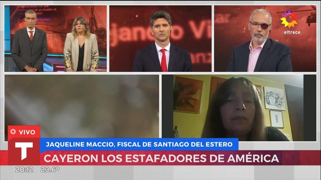 Así se informó anoche en la TV nacional. Vía zoom, la fiscal santiagueña, Jaqueline Macció, reveló que se trata de 4 venezolanos detenidos y 2 prófugos. Eran investigados desde septiembre del 2024. Cayeron 3 hombres y una mujer, quienes serán indagados lunes o martes.