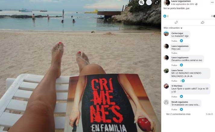 La publicación fue realizada en septiembre de 2015 durante unas vacaciones familiares. En ella, Leguizamón compartía una foto del libro que estaba leyendo, titulado Crímenes en familia, y escribió como epígrafe: "Ivo se porta horrible", en alusión a uno de sus hijos. A esa frase se sumó un inquietante intercambio con una amiga: "¿Lo mataste? Jeje", le comentó la usuaria, a lo que Laura respondió: "Hoy casi". El contenido, que en ese momento pasó desapercibido, hoy vuelve a escena cargado de significados perturbadores.