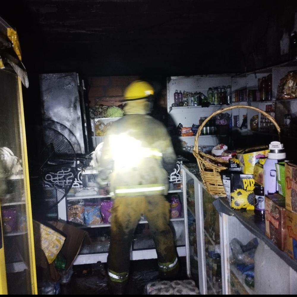 A pesar de los esfuerzos de los bomberos, el incendio causó pérdidas significativas en mercadería y estanterías del comercio.